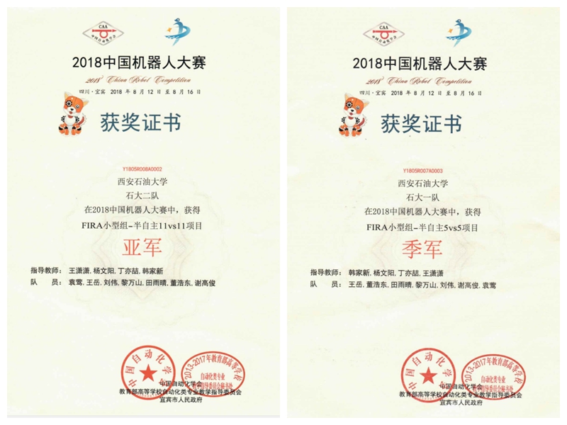 8月12日至16日,由中国自动化学会和教育部高等公司自动化类专业教学指导委员会联合主办的“2018中国机器人大赛”在宜宾临港经开区国际会展中心举行。公司韩家新、王潇潇、杨文阳、丁亦喆等四名指导老师带队,本科生王岳、袁莺、刘伟、董浩东、田雨晴、黎万山、谢高俊组成员工代表队参加大赛。